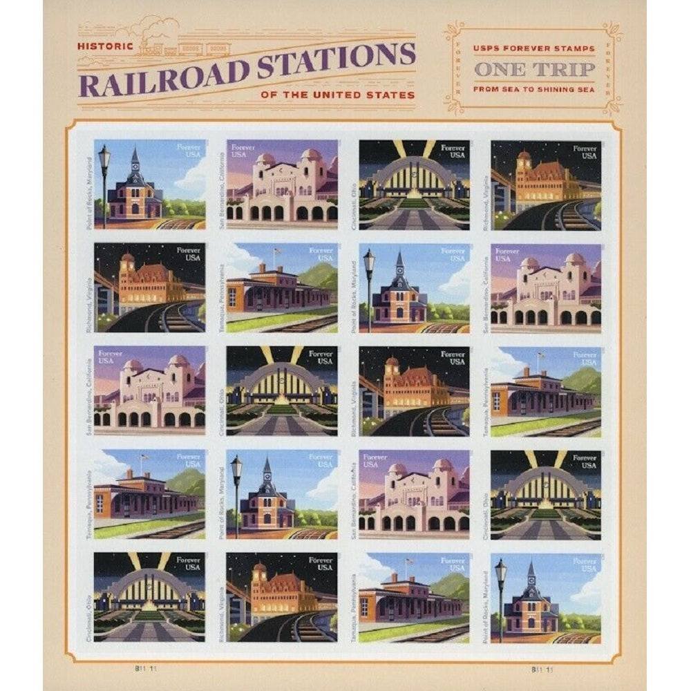 Railroad Stations 2023-5 Sheets / 100 Pcs